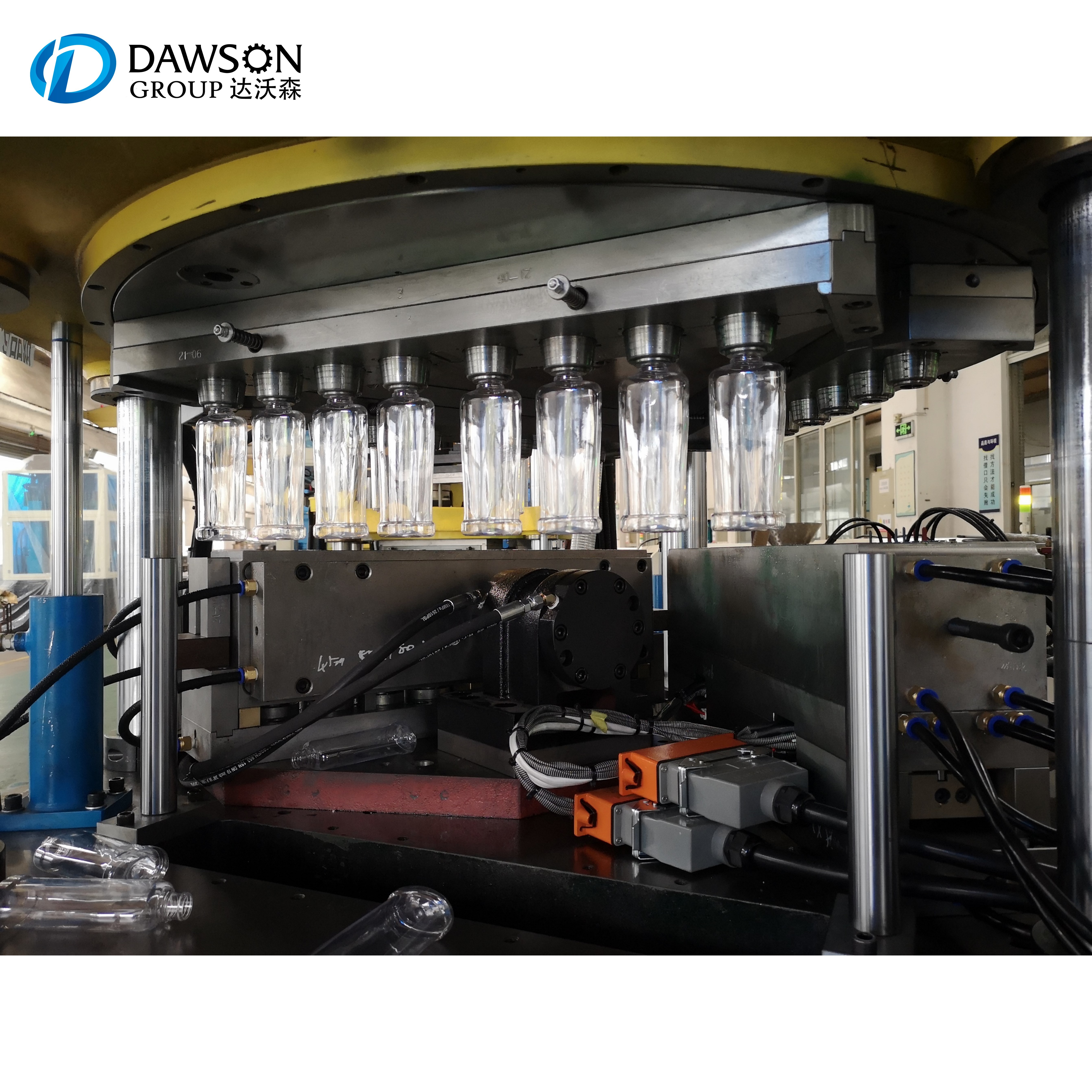 1Maszyna do formowania wtryskowego 2.Maszyna do przemieszczania preformy 3Maszyna do podgrzewania, rozciągania i odlewania |