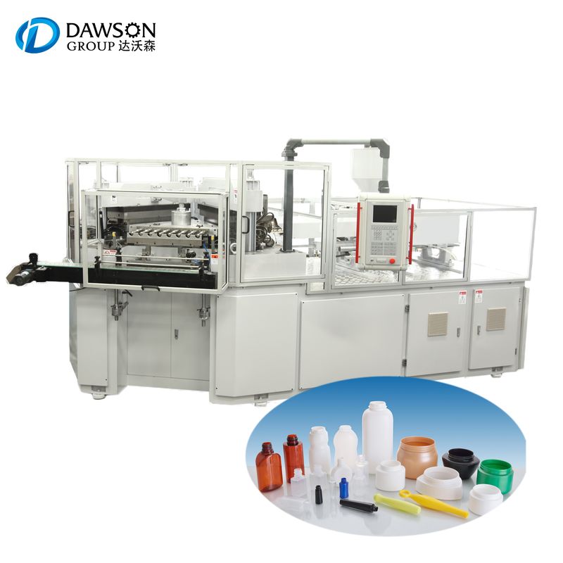 Wtryskarka z rozdmuchem oparta jest na bębnie wytłaczarki i zespole ślimaka, który topi polimer.Stopiony polimer jest podawany do kolektora gorącokanałowego, gdzie jest wtryskiwany przez dysze do ogrzewanej wnęki i trzpienia rdzeniowego.Forma wnękowa tworzy kształt zewnętrzny i jest zaciśnięta wokół pręta rdzeniowego, który tworzy wewnętrzny kształt preformy.Preforma składa się z w pełni uformowanej szyjki butelki/słoika z przymocowaną grubą rurką z polimeru, która uformuje korpus.podobny wyglądem do probówki z gwintowaną szyjką.