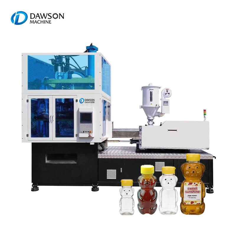 Ta maszyna ma trzy stacje, preformę wtryskową, rozdmuchiwanie i rozciąganie oraz uwalnianie produktu.Surowiec pochodzi z leja samowyładowczego do śruby wtryskowej w celu wtrysku preformy;płyta obraca preformy, aby wydmuchać / rozciągnąć stację wydmuchową z samym ciepłem, bez ponownego podgrzewania do przedmuchu, następnie produkt obróci się, aby zwolnić stację i opadnie, jest to w pełni automatyczny tryb pracy z obrotem cyklu, no trzeba kupić preformę butelki, bez odpadów, wysoki stopień automatyzacji, gotowe produkty gładkie i piękne.